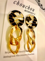 【イヤリングのみ】ラスト1点▼goldチェーン×アセテート柄 アクリルプレートNo.36
