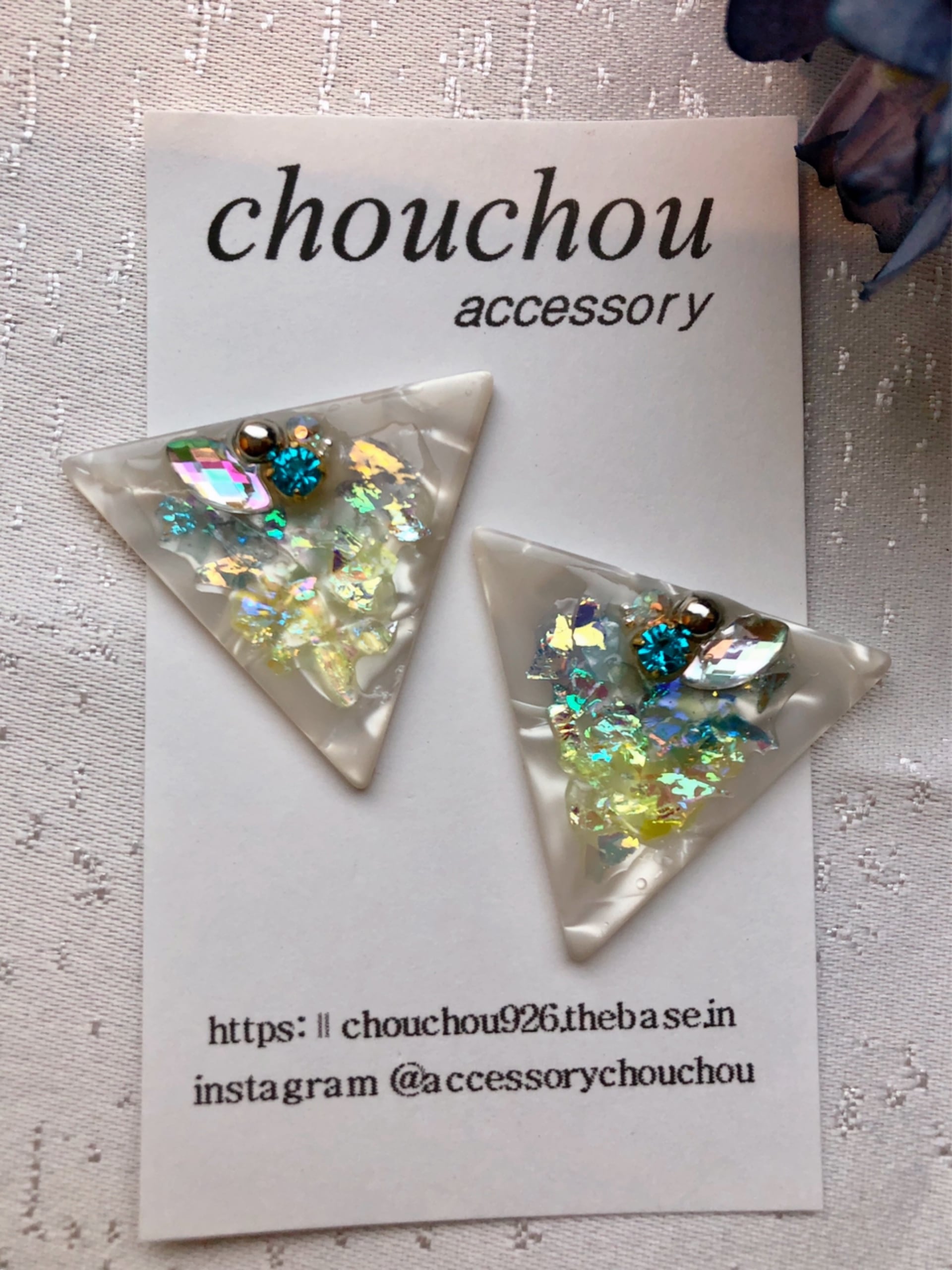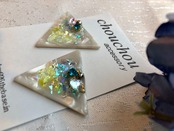 【イヤリング 無料】ビジュー 宝石ホロ×yellow light blueグラデーション 三角ピアス