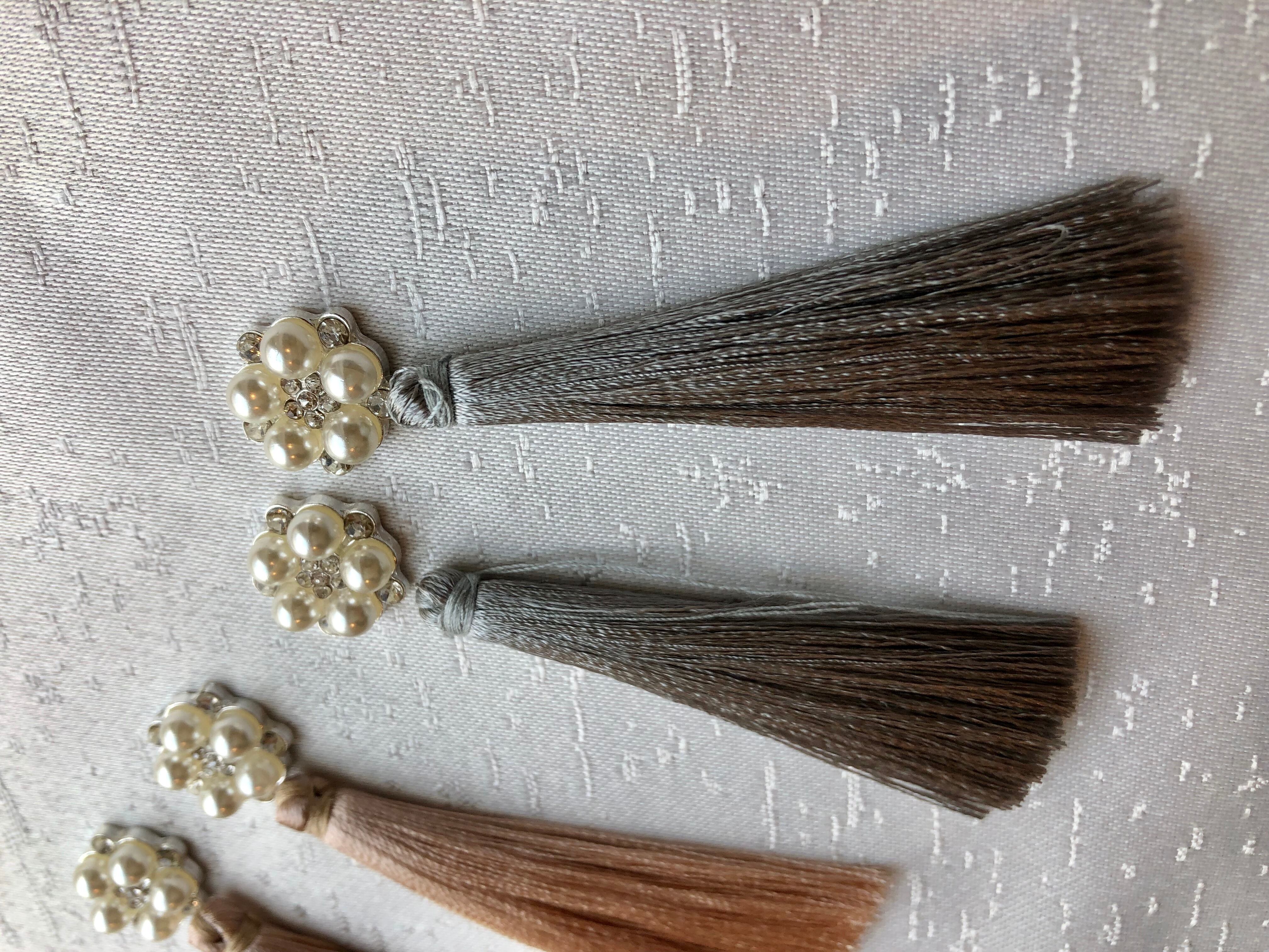 【イヤリング無料】パール ビジュー×ロングタッセル 上品 おおぶりピアス