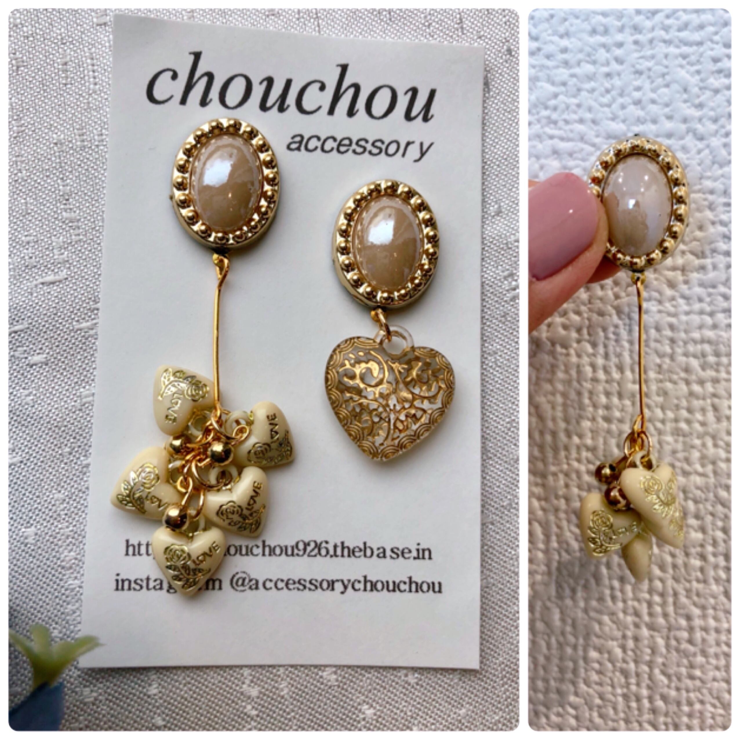 【イヤリング無料】アシンメトリー ヴィンテージハート ゆめかわいい じゃらじゃら ピアス