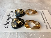 ▼金箔 ブラック 三角カボション×ゴールドチェーン ピアスorイヤリング(イヤリング変更無料)