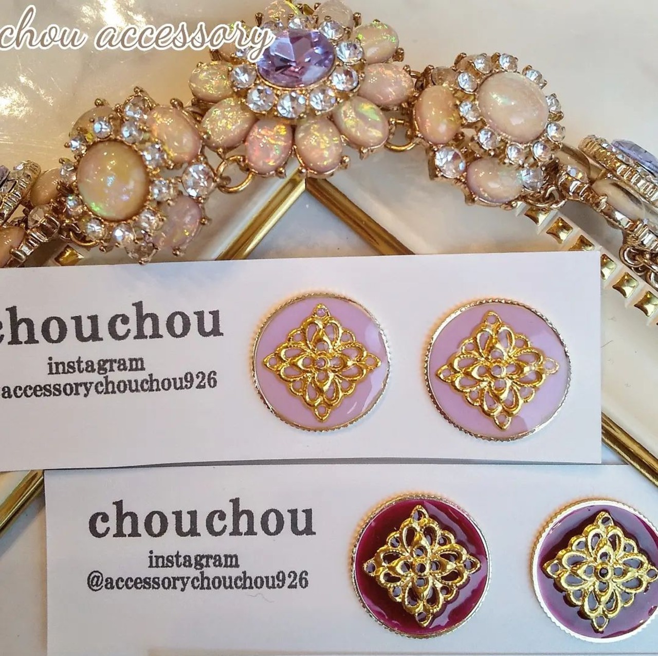 GOLD レースプレート/彩り ハンドメイドピアス/イヤリング無料